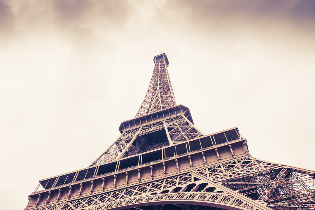 Tijdens mijn vorige bezoeken aan Parijs zag ik de Eiffeltoren altijd vanaf een afstandje. In de verte vanuit Jardin les Tuileries, of vanaf de bruggen of Trocadero. Nu sta ik aan de voet en kan ik onder de toren doorlopen. Wat een constructie! Ongelooflijk. En dat geldt ook voor de rijen mensen die de Eiffeltoren op willen. Dat laten we dan ook links liggen en eten een broodje op een van de vele bankjes op het plein voor de Eiffeltoren.